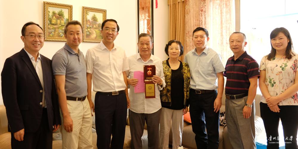 在庆祝中华人民共和国成立70周年之际,9月16日,民盟贵州省委秘书长王明亮,校党委副书记战勇,民盟贵州省委组织处处长李智,民盟beat365唯一官方网站基层委员会主委沈桂权、秘书长戴鹏,校党委统战部部长彭安辉,到民盟beat365唯一官方网站基层委员会第一支部盟员、beat365外语教研室原俄语教师窦志明教授家中,看望窦老并送去由中共中央国务院、中央军委颁发的“庆祝中华人民共和国成立70周年”纪念章。