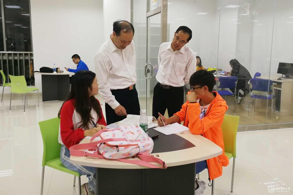 9月29日晚,党委书记林昌虎到南校区图书馆实地走访,深入了解学生晚自习情况,党委副书记战勇陪同。