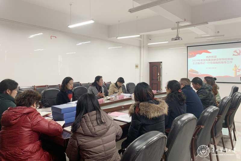 12月2日,基础医学院在务本楼会议室迎接学校2019年度党风廉政建设责任制落实情况督导检查。纪委书记王之瑞,校纪委副书记、监察室主任岳萍,生物与工程学院党委副书记郑维薇,校纪委信访案件科科长刘安跃来我院检查相关工作,基础医学院院长曾柱、副院长张春林、统战委员陈峥宏、各职能科室负责人参加会议。会议由曾柱主持。