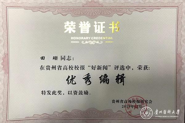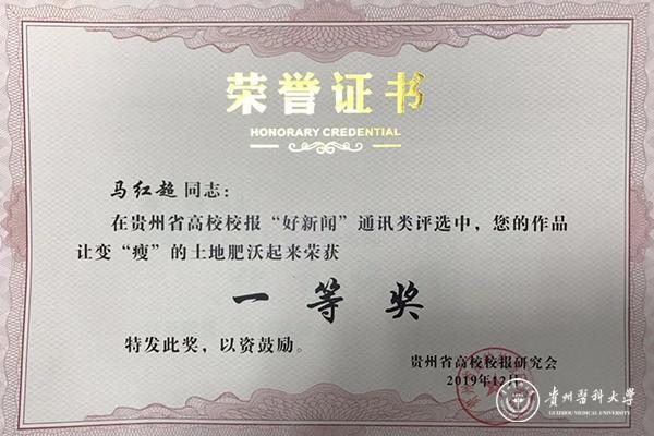 在2018年度全省高校校报好新闻评选中,beat365校报作品共获5个奖项,一等奖1项,二等奖3项,三等奖1项,优秀编辑1名,优秀学生记者5名。其中,马红超《让变“瘦”的土地肥沃起来》获通讯类一等奖;杜思影《大医精诚》获言论类二等奖,康太艳、陈松江、孙成琴《精彩瞬间》获新闻摄影类二等奖,官方微信作品《外婆的毕业证》获新媒体类二等奖;赵宇红获消息类三等奖,张丽获通讯类三等奖;田珊获“优秀编辑”称号;伍孝东、黄亦思丹、杨山正、雷益、杜青玲获“优秀学生记者”称号。