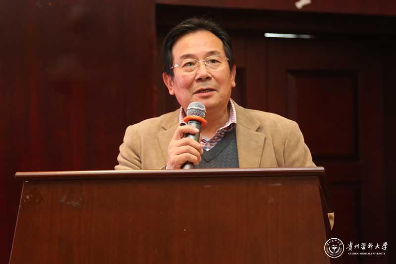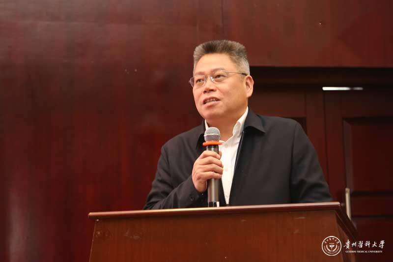 校党委书记林昌虎致欢迎词。他指出,《贵州科学家传记丛书》是面向社会、面向全国宣传展示贵州科技工作者良好风貌的重要契机,更是面向贵州学子阐释“贵州科学家精神”内涵,号召激发广大青年承传“贵州科研衣钵”,怀揣科技报国志向,倾情奉献科学事业的绝佳机会。贵医作为活动的承办方之一,心存感佩,倍感荣耀!贵医将始终牢记“为党育人、为国育才”的初心使命,弘扬践行“团结奋进、拼搏创新、苦干实干、后发赶超”的贵州精神,紧盯全国及世界医药科技前沿,积极融入高等医学学科建设主流,着力培育造就一批有志于振兴贵州医学教育和医学科技事业的“新生力量”,致力打造一支具有领军水平的专家队伍和创新团队,努力为贵州乃至全国医疗卫生事业的蓬勃发展贡献“贵医智慧”。
