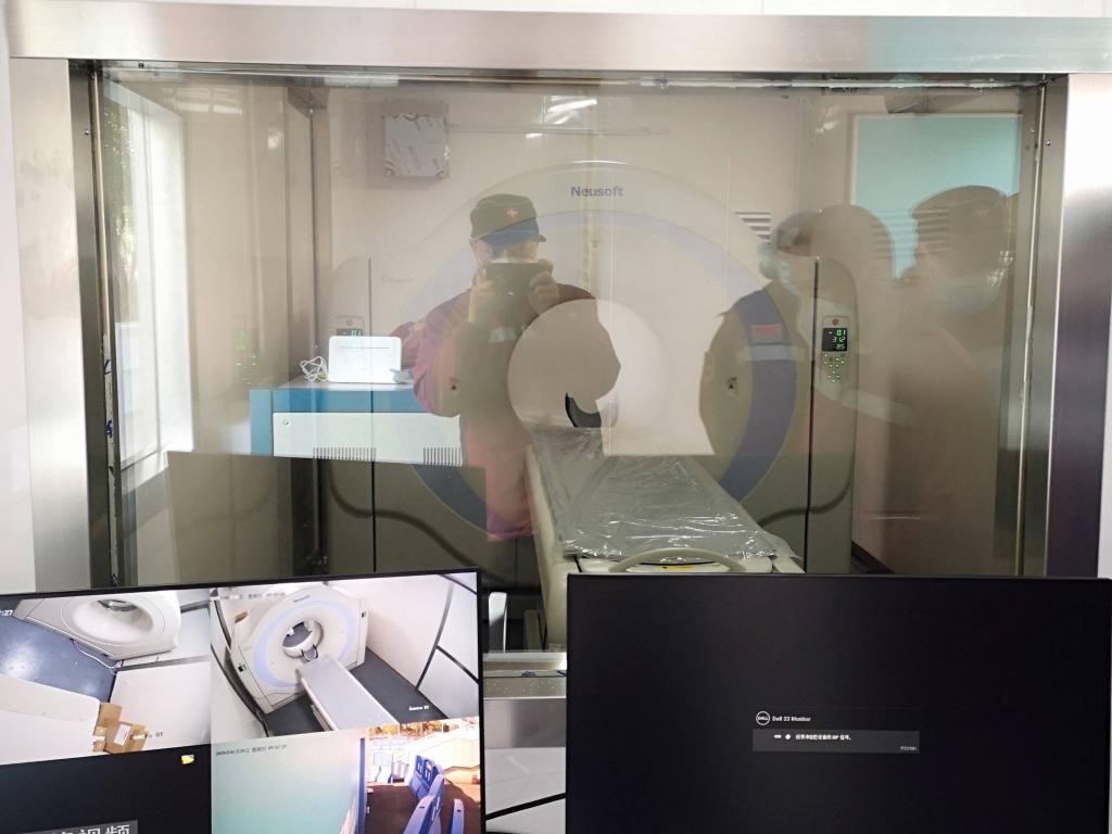 还要带给大家一个好消息,今天我们方舱的移动CT安装好了,胸部CT直接可以在方舱进行检查了,这些都得感谢一直默默付出的影像医生了。今天还对我们进行了仪器操作的培训,虽然他没有说为啥要培训我们操作仪器,可我们比谁都清楚,他是怕自己万一倒下了影像检查的工作会暂时搁置。
