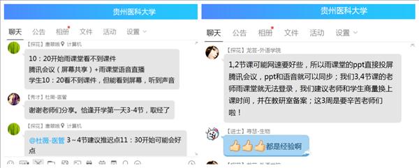 今天的线上教学结束后,教师们纷纷在不同的群里分享教学经验,进行教学交流。