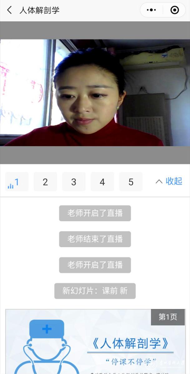 医学人文学院龚红教师,自行升级装备,雨课堂+慕课+直播的方式,顺利完成开学第一课。