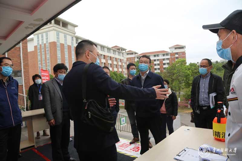 4月21日,省教育厅高校新冠肺炎疫情防控及开学准备工作调研检查组到beat365检查开学准备工作。全省普通高校新冠肺炎疫情期间春季学期开学准备工作beat365唯一官方网站审批会在beat365花溪校区知雨楼6楼会议室召开。省教育厅、省属兄弟高校相关负责人,省卫健委、省疾控中心有关专家,校领导罗俊、战勇出席会议,学校相关职能部门(单位)负责人参加会议。会议由省教育厅高校新冠肺炎疫情防控及开学准备工作调研检查组组长、贵州师范大学副校长罗永祥主持。