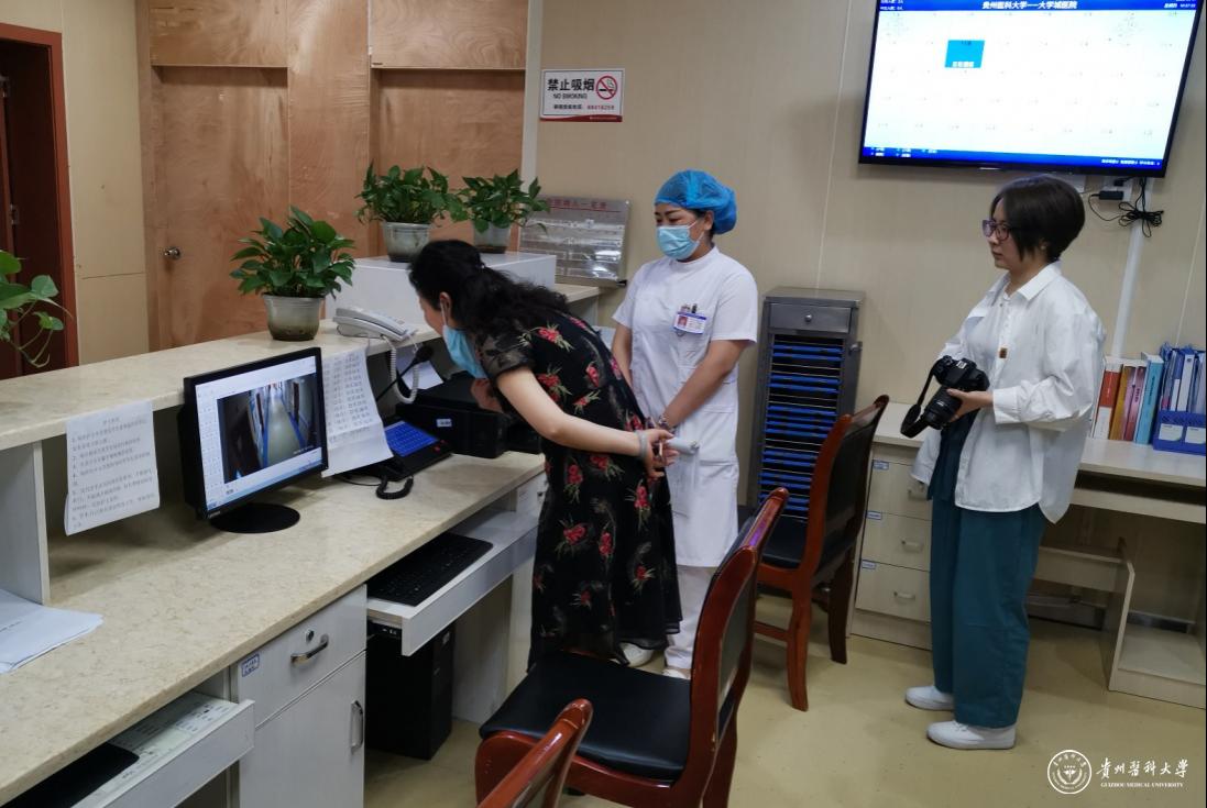 王之瑞通过视频监控系统,与在隔离病房的同学亲切交流,叮嘱他们遵守隔离要求、注意身体健康、保持心情愉悦、安心度过隔离期。