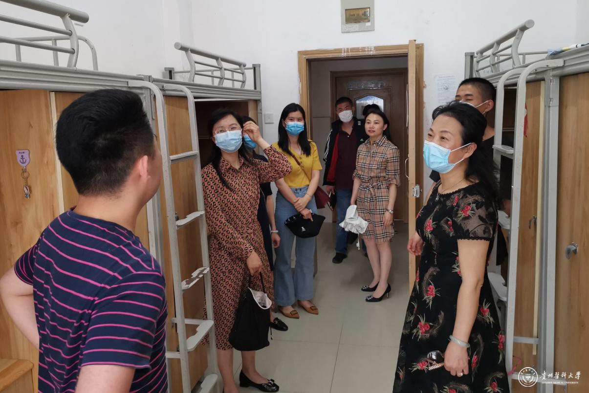 随后,王之瑞一行查看了两个学院的学生宿舍,深入了解学生的生活、学习情况及思想状况。在走访过程中,详细询问了学生的隔离状况、口罩等防疫物资准备情况,了解他们返回学校后学习和生活上的需求和对学校工作的意见建议,提醒他们在校期间严格遵守防控纪律,做好个人防护,保持良好的学习生活规律,以最佳的精神面貌积极迎接新学期的各项挑战。