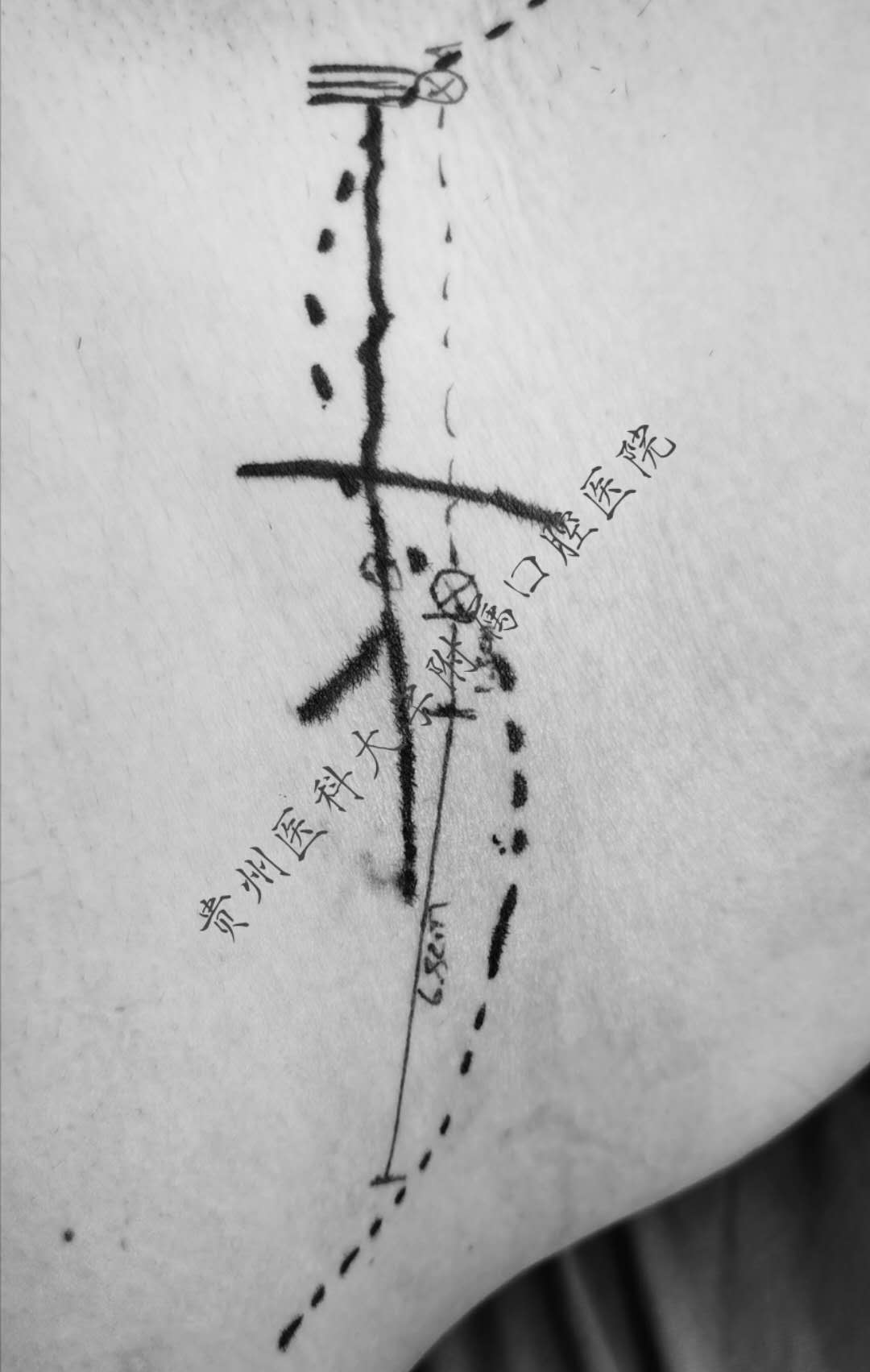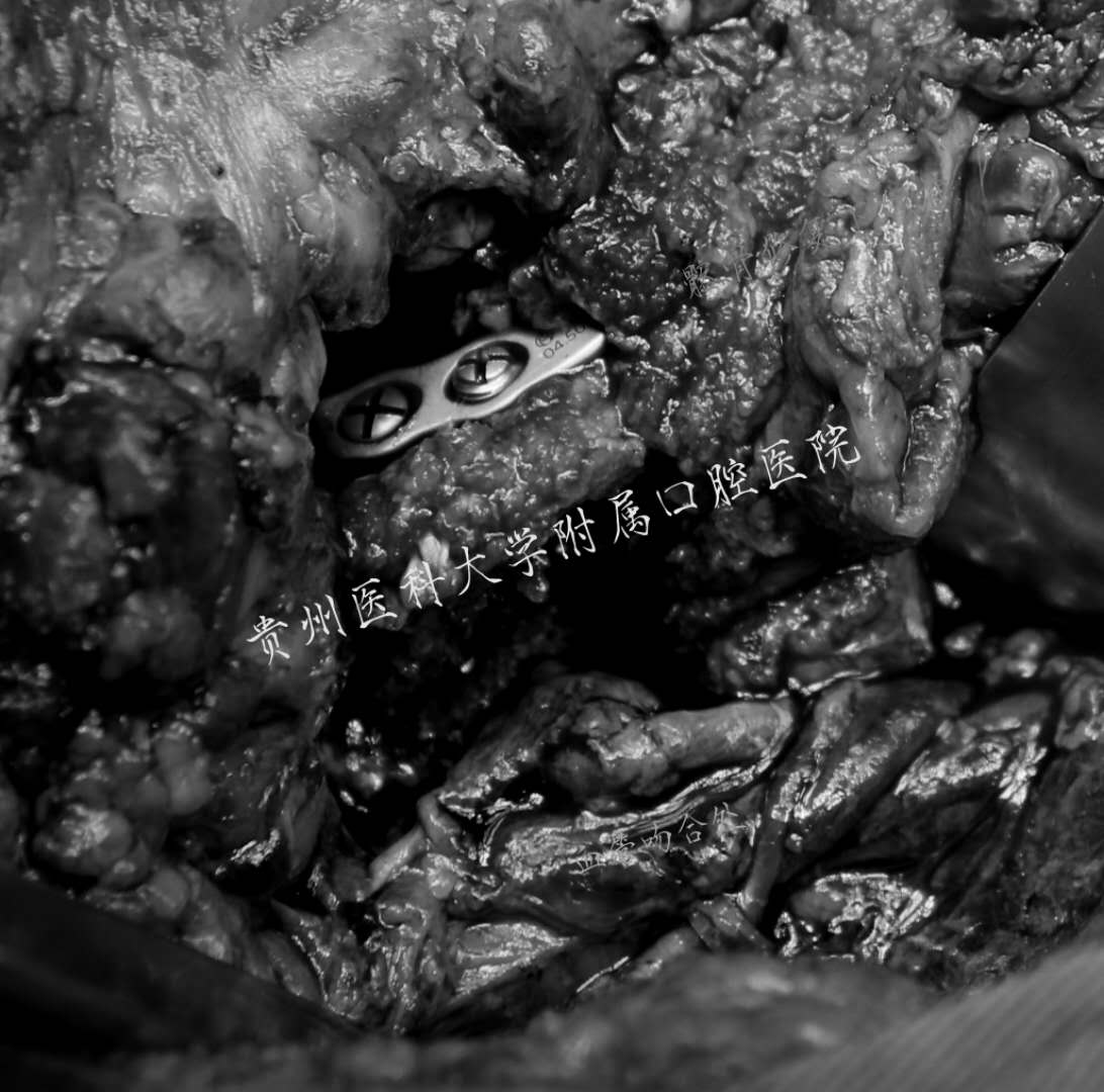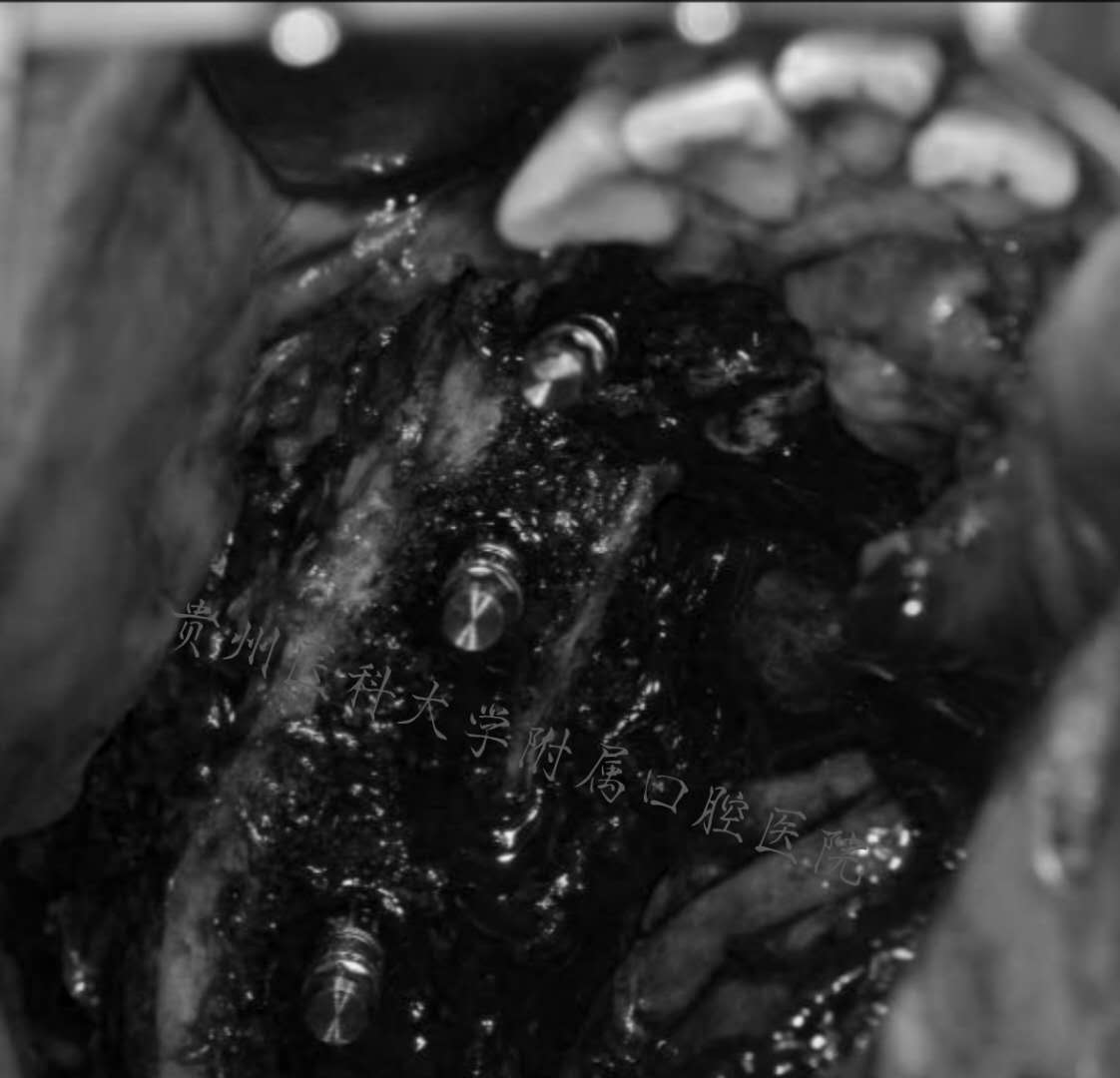 此次手术由口腔颌面外科修复重建主任刘睿团队联合口腔修复科主任董强团队共同操刀,历时一天,成功完成了迄今为止贵州省首例数字化外科技术引导下行“下颌骨肿物扩大切除术+游离血管化髂骨肌瓣切取移植术+面部微小动静脉吻合术+同期种植体植入术”。