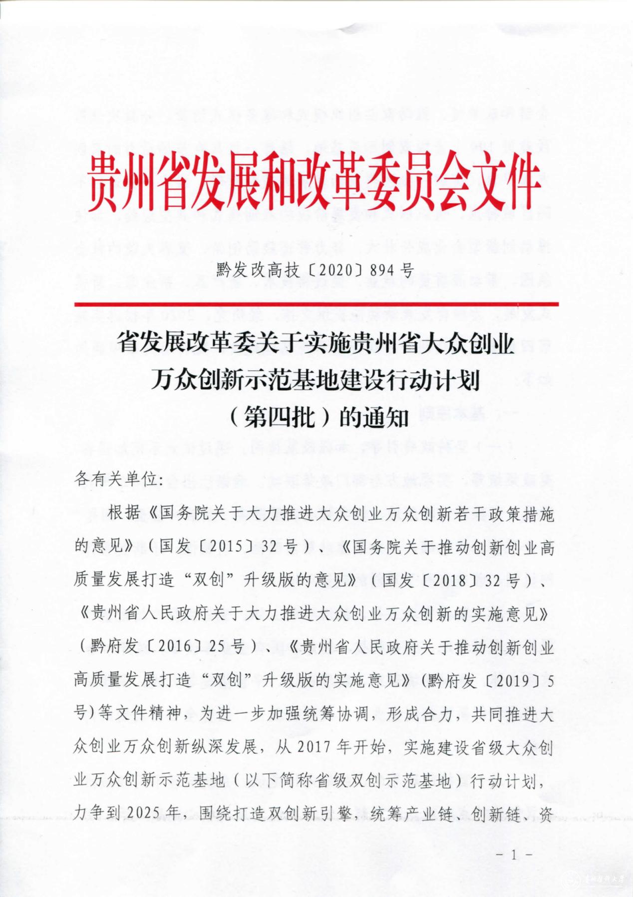 近日,贵州省发展和改革委员会公布了14家“省级双创示范基地”名单,beat365成功获批第四批“省级双创示范基地”。