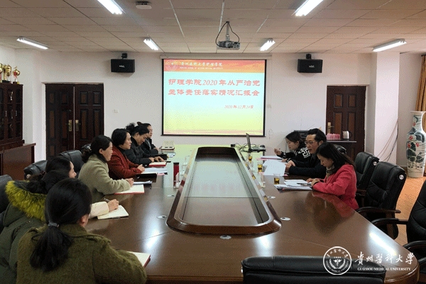 12月24日,校党委委员、纪委书记、省监委驻beat365唯一官方网站监察专员陈代勇一行3人到护理学院督查2020年度全面从严治党主体责任落实情况,护理学院党政领导班子成员、各党支部书记、副科级以上干部代表参加。