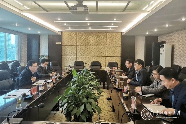 罗鹏代表学校对鲁谋一行来校调研指导表示热烈欢迎,并对省人社厅人才服务局长期以来对学校的关心、关怀和关爱,以及对人才工作给予的大力支持和帮助表示衷心感谢。同时表示,学校人才工作在上级主管部门的悉心指导下取得了一定成绩,但是与学校百年建设远景目标、国内外高水平医科院校的差距明显,人才工作任重道远,希望上级主管部门给予更大的支持和政策指导。为提升学校内涵建设,广泛引育高端人才,努力打造一流学科、一流师资队伍、一流医科大学,对人才工作提出四点意见建议。一是深化人才引领。人才的重要作用体现在思维的引领、行动的感染、领域的崛起,要用好省人才政策,重点引进和培养高端人才,带动学科和领域的高质量发展;二是加强平台搭建。全面启动大基础、大临床、大公卫、大药学等学科融合发展,建立公用实验平台,实现资源整合、开放共享。三是注重团队建设。在现有编制资源情况下为团队引育高层次人才,编外实验技术人员和科研助理予以补充,研究生招生指标给予倾斜,形成人才结构合理,创造能力强的一流团队。四是强化人才服务。最大限度地为人才解决实际难题,着力打造服务效率最高、服务体验最好、人才获得感最强的人才服务环境,让各类人才为贵州医学教育、科学研究、医疗服务做出贡献,推动贵州医药卫生事业高质量发展。