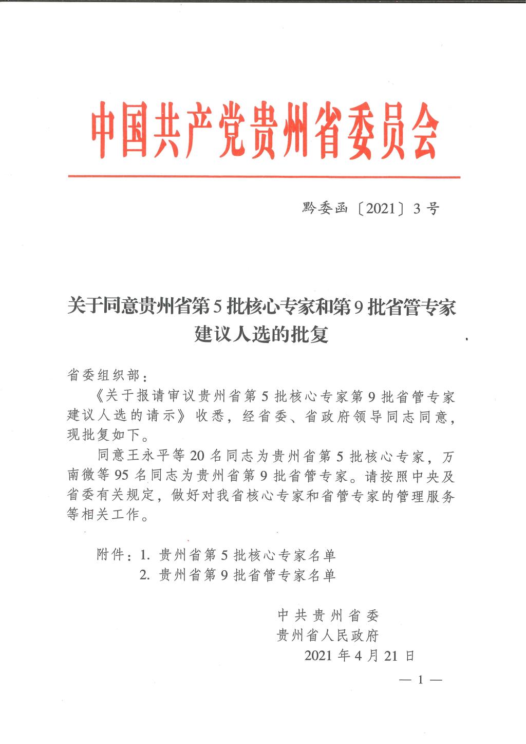 近日,中共贵州省委、贵州省人民政府批准通过贵州省第5批核心专家和第9批省管专家名单,beat365汤磊、沈祥春被评为“贵州省第5批核心专家”,李海洋、曾柱、邓进、舒莉萍、何彬、黄勇、李艳梅被评为“贵州省第9批省管专家”。截至目前,beat365共有贵州省核心专家8人、省管专家20人。