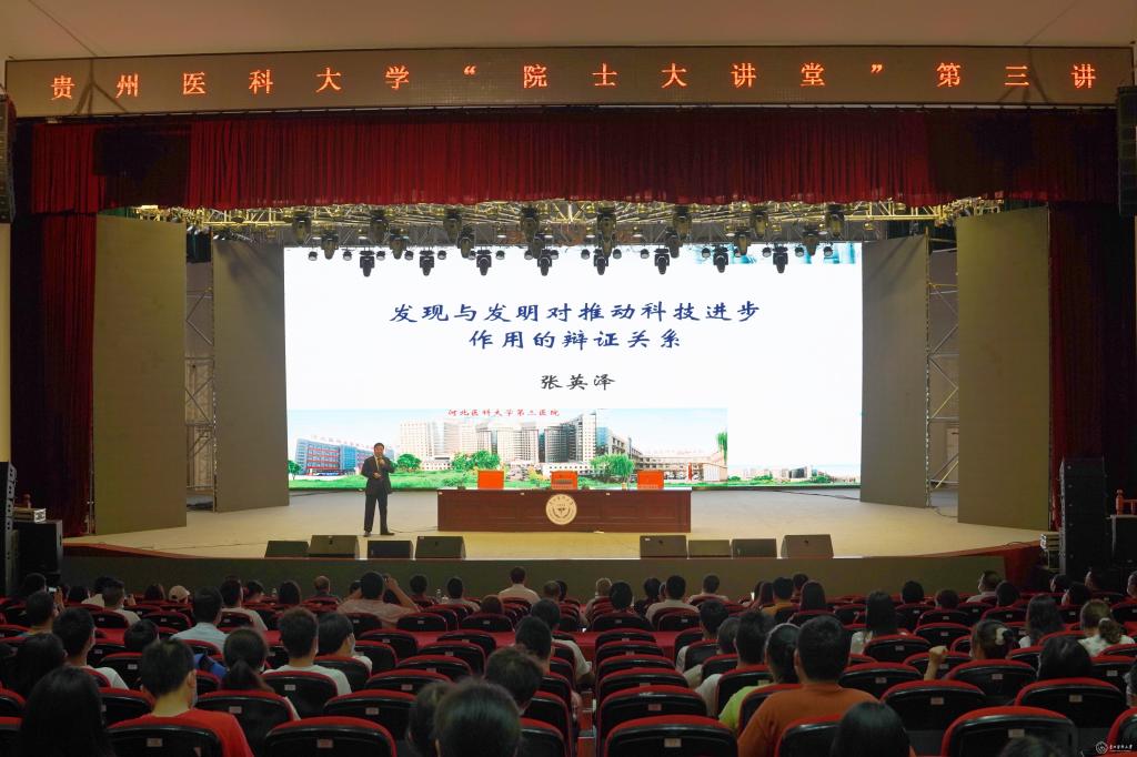 “问渠那得清如许,为有源头活水来。”张英泽院士将自然科学喻作一条清澈深邃的河流,科学发现是永不枯竭的源头,技术发明是星罗棋布的湖泊。他鼓励贵医学子奋发向上、心怀理想,发扬责任意识与担当精神,以脚踏实地、百折不挠、勇于创新的精神实现自己的梦想。