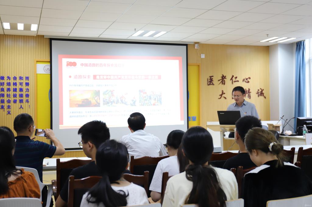 王韬从“道路探索是贯穿中国共产党百年奋斗史的一条主线”“坚持中国特色社会主义道路,不断创造新的历史伟业”等方面进行授课,结合中国道路的发展历程,讲述中国共产党在百年实践中探索出的中国革命道路,中国社会主义改造道路和中国特色社会主义道路,深刻分析百年道路探索带给我们的现实启示,旁征博引、深入浅出地给全体党员上了一堂丰富的党课。