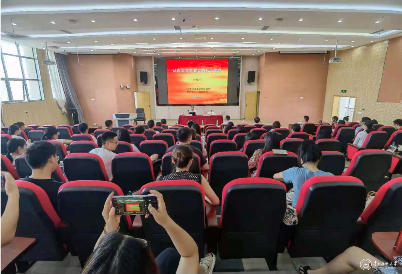 7月9日,马克思主义学院、党史党建研究中心、党委学生工作部以“启慧讲堂”学术讲座形式在南校区广德楼六楼录播室举行党史学习教育暨“牢记殷切嘱托、忠诚干净担当、喜迎建党百年”专题教育宣讲报告会。贵州省委党史学习教育宣讲团成员、中共贵州省委党史研究室副主任余福仁受邀,作题为“从百年党史看党的初心使命”的专题报告会。学校党委副书记战勇出席并主持;马克思主义学院党委书记、党史党建研究中心主任黄鑫权,党委学生工作部(学生处)部长(处长)王韬,马克思主义学院党委副书记王万江,党委委员禹辉映、凌富亚及全体教师和学校辅导员参加。