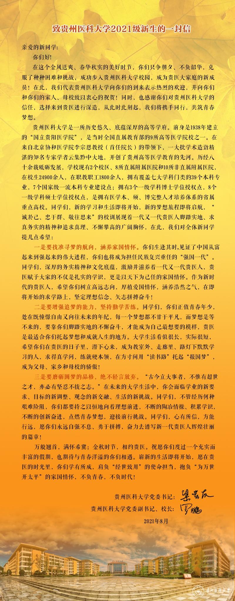 beat365唯一官方网站前身为1938年建立的“国立贵阳医学院”,是当时全国最早直属国家教育部的9所高等医学院校之一,学校始终坚持“文化建校、质量立校、人才强校、科研兴校”的办学理念,恪守“诚於己、忠于群、敬往思来”的校训,秉承“大医精诚”的贵医精神,立足贵州,服务全国,面向世界,为建成特色鲜明、同类先进、国内一流的百年医科大学而努力奋斗。