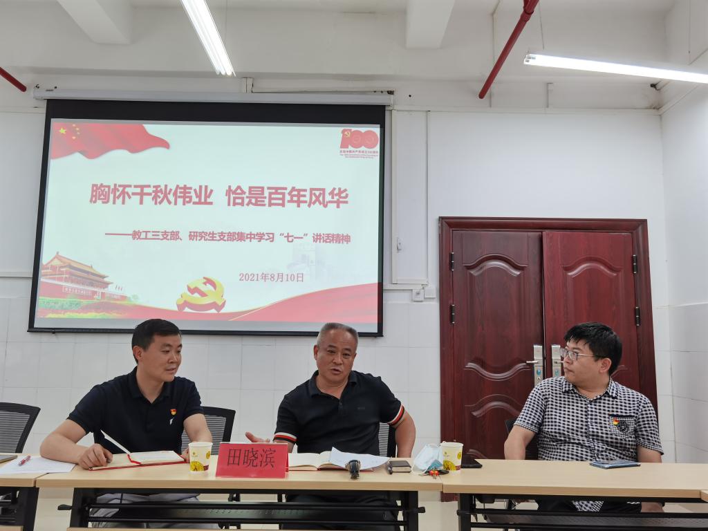 会上,廖健以四个伟大成就、伟大建党精神、九个必须为切入点,讲“庆祝中国共产党成立100周年大会上的重要讲话精神”专题党课,希望学院研究生党员以实现中华民族伟大复兴为己任,增强中国人的志气、骨气、底气,不负时代,不负韶华,不负党和人民的殷切期望。随后,党员同志们与会交流发言。