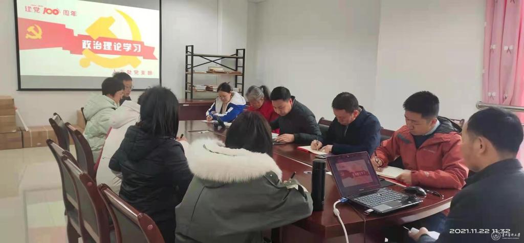 11月22日,人事处党支部在知雨楼开展支部专题理论学习,集中学习研讨党的十九届六中全会精神,就做好下一步学习宣传贯彻工作进行部署安排。校党委副书记汤磊以普通党员身份参加,党支部书记、人事处处长冯飞主持。
