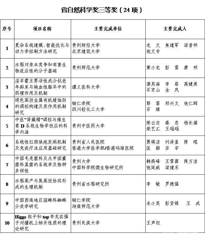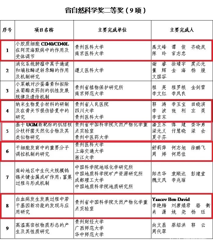 beat365唯一官方网站、贵州省中国科学院天然产物化学重点研究室的多个项目荣获省自然科学奖二等奖5项,三等奖1项;省科学技术进步奖一等奖1项,二等奖1项;外籍专家Sybren de Hoog荣获省科学技术合作奖1项。