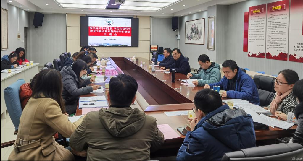 1月11日,药学院在南校区格物楼六楼会议室召开了学科建设、学位与研究生教育专题会,校党委副书记汤磊,副校长、药学院院长沈祥春出席,药学院党政领导、药学各学科点负责人、各重点实验室责任人及相关业务科室工作人员参加,会议由沈祥春主持。