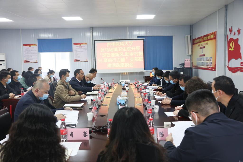 党委办公室党支部和马克思主义学院教职工第一党支部一行实地调研了马场镇卫生院,听取了关于马场镇卫生院党建和业务工作情况的介绍,与马场镇党委、政府、人大主要负责同志围绕党支部建设、党建与业务工作融合发展、解决学校整体搬迁入驻云漫湖新校区前后师生急难愁盼问题、马场镇医疗卫生服务能力提升、校地合作助推乡村振兴等方面开展了座谈交流。