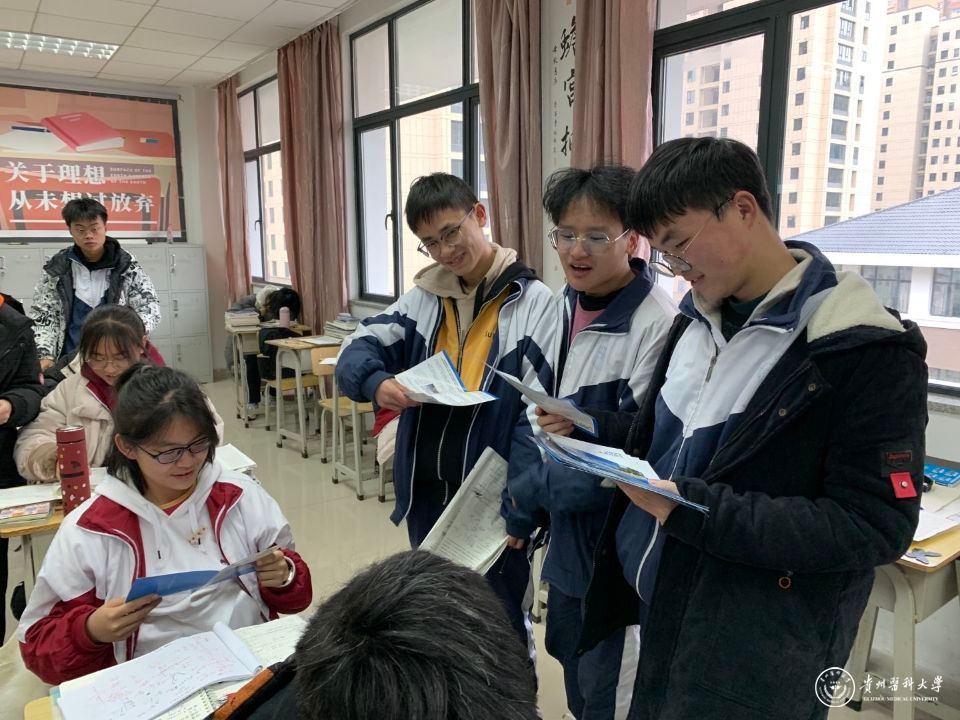 “医路筑梦·相约贵医”寒假招生宣传活动由招生就业处与基础医学院连续三年联合主办,今年更有临床医学院、公共卫生与健康学院、护理学院、口腔医学院、医学检验学院、麻醉学院、生物与工程学院、法医学院、儿科学院、医药卫生管理学院、外国语学院等学生的积极报名,参与学校招生宣传活动。