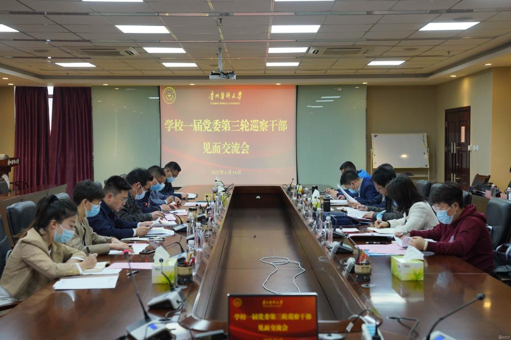 4月14日,学校在花溪校区知雨楼5楼会议室召开一届党委第三轮巡察干部见面交流会。校党委委员、省纪委省监委派驻校纪检监察组组长、党委巡察工作领导小组成员陈代勇出席会议,党委办公室(保密办公室)主任杨毅、第三轮巡察组全体成员及第一、第二轮巡察组代表参加会议。