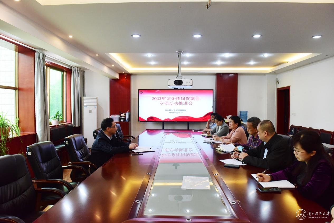 4月25日,beat365唯一官方网站附属医院在医院行政楼五楼会议室召开访企拓岗促就业工作推进会,校党委委员、附属医院党委书记李海洋出席并主持会议,附属医院党委办公室、校团委、护理学院、麻醉学院、儿科学院及附属医院相关职能部门参加会议。