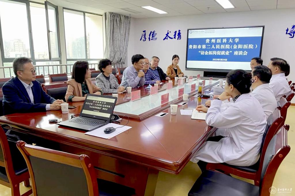 5月24日, 副校长罗俊带领国资处处长张兴、医学影像学院党委书记李雪梅、院长周石等先后到贵阳市第一人民医院、贵阳市第二人民医院(金阳医院)开展“访企拓岗促就业”专项行动。深入交流医院对学校的人才招聘需求以及医教研合作意向。