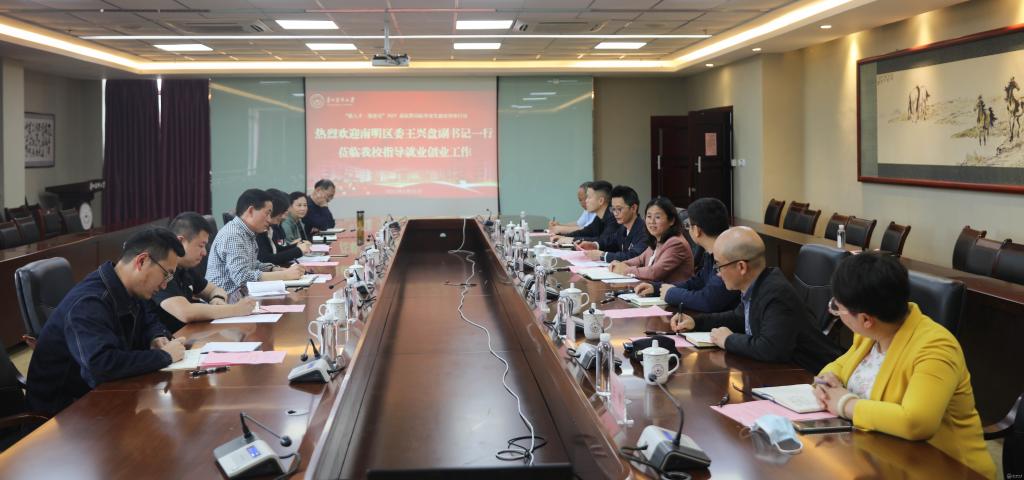 5月25日,南明区委副书记王兴盘带队到beat365开展“访企拓岗促就业专项行动”交流座谈会,会议在南校区五楼大会议室举行,副校长蒋红梅出席并讲话,党委学生工作部部长王韬、招生就业处副处长李季、公共卫生学院党委副书记何江、护理学院党委副书记何为、医药卫生管理学院党委副书记王倩、大健康学院党委副书记杨丹参加,会议由李季主持。
