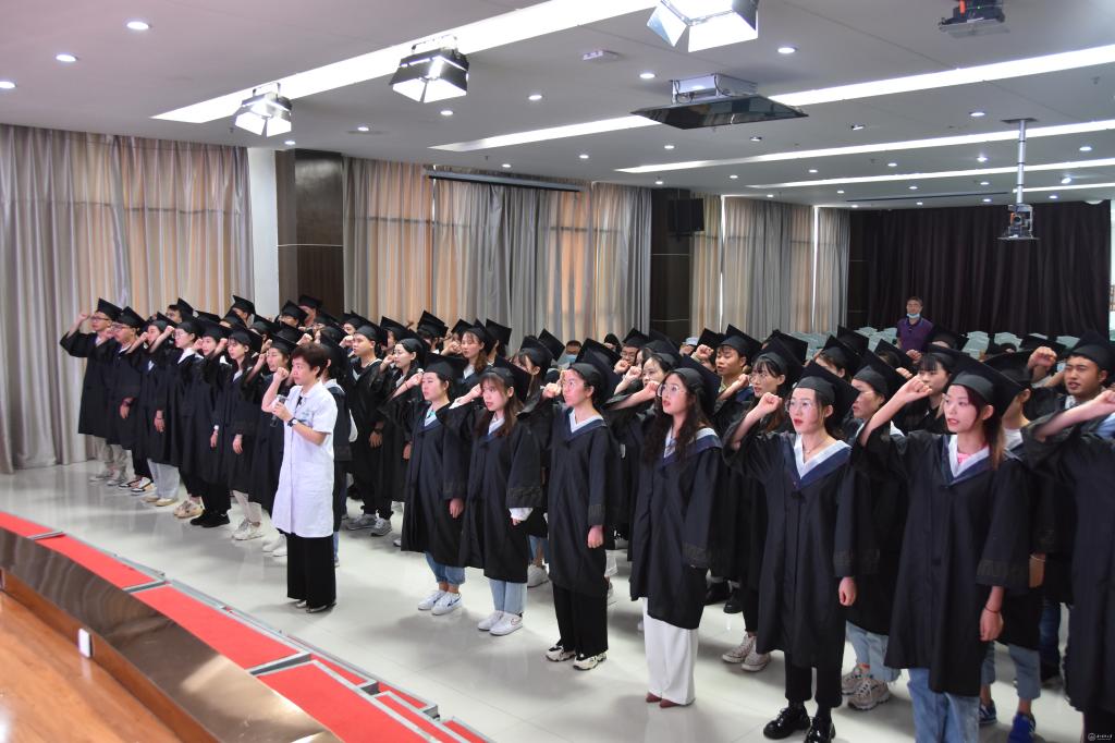 毕业典礼在副院长郑丽波带领毕业生们重温《医学生誓词》的宣读中画上句号。