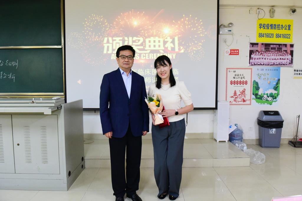 徐国强为本次大赛特等奖获得者颁奖并进行总结。他充分肯定了临床医学院对教学的重视,同时对本次比赛各环节工作予以肯定。徐国强强调,临床医学院的教学质量关系到整个学校人才培养的质量。通过本次比赛的举办,青年教师正在快速成长,教学水平也更上了一个台阶,但是仍有提升的空间。学校将继续为青年教师搭建学习交流平台,希望青年教师积极参与临床教学工作,进一步转变教学观念,增强教学意识,努力传承好附属医院优良的教学传统,担当好培养优秀医学人才的神圣使命。