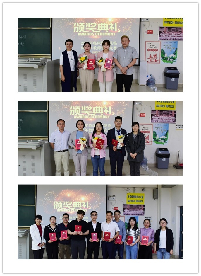 经过紧张角逐,妇产科学教研室潘莉娜获特等奖,神经病学教研室蔡刚获一等奖,感染病学教研室李璨、重症医学教研室付建宇获二等奖,眼科学教研室李冰、针灸推拿学教研室孙苏闻、全科医学教研室涂丽获三等奖。
