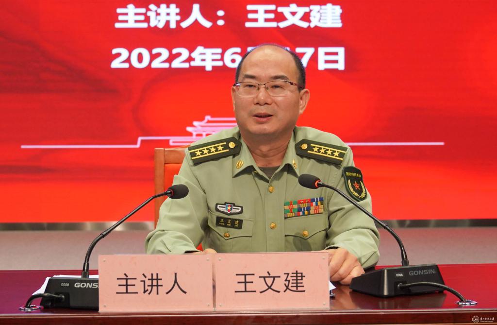 王文建以“青春逢盛世,奋斗正当时”为题,围绕青春选择、青春规划、青春担当三个方面进行讲授。他强调,在百年未有之大变局和中华民族伟大复兴全局中,青年必须在场,要自觉找准定位、做好选择,勇于承担国家和民族振兴的责任使命。他结合国家和地方征兵入伍政策及实际工作情况,勉励同学们珍惜时光,做有理想、有追求、敢拼敢闯的新时代青年,扎根军营沃土,在军队的大熔炉里学习成才,用新的奋斗史续写党的百年光辉。
