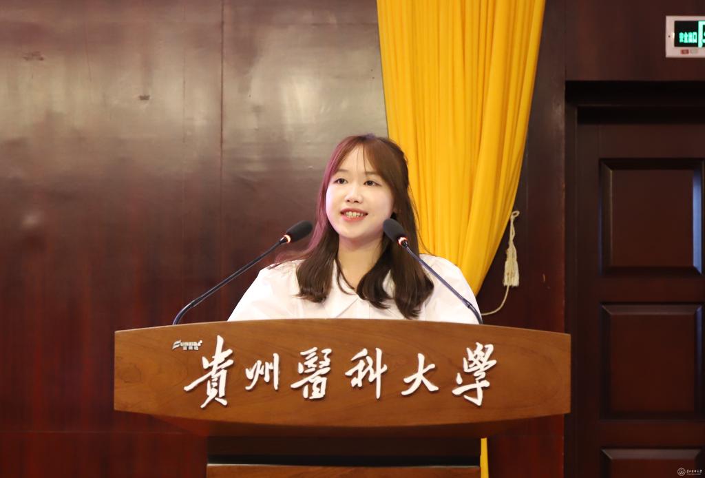 公共卫生与健康学院预防医学专业2021级2班团支部黄朝蓉代表优秀学员发言。她表示,作为新时代的贵医团员青年,生逢盛世,肩负重任,要坚定红色信仰,努力成为党的优秀后备力量,为国家的发展和中国梦的实现贡献青春力量。