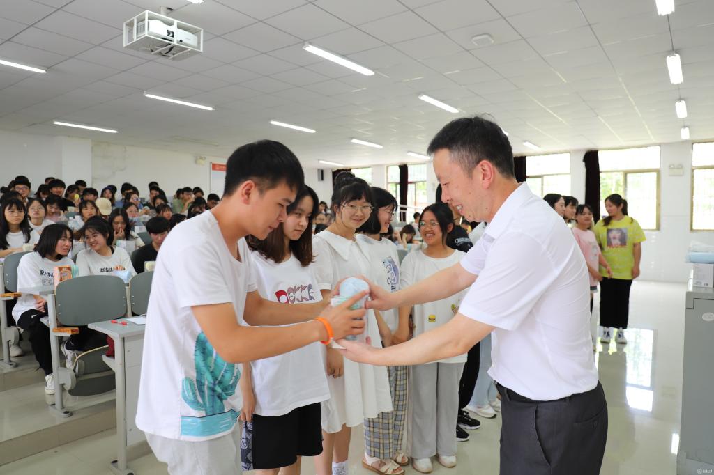 汤磊倾听了同学们入校以来的学习、生活情况,亲切地与同学们交谈,为同学们发放了学校精心准备的夏季大礼包。汤磊谈到,少数民族预科教育是顺利步入大学的重要过渡期,同学们即将升入本科阶段护理专业学习,希望大家心有目标,向阳而生,继承发扬“燃烧自己、照亮别人”的南丁格尔精神,努力成长为一名以保障人民群众健康为己任的优秀医务工作者。正逢考试周来临,他鼓励同学们不负青春、不负时代,始终保持探究知识的动力与热情,始终保持对未来的憧憬与信心,努力做到珍惜韶华,潜心读书,求真学问,练真本领。他嘱托预科班辅导员要做好学生管理工作,帮助学生协调好录取通知书邮寄、宿舍搬迁等问题,切实解决学生生活困难,为学生顺利升入本科阶段“保驾护航”。
