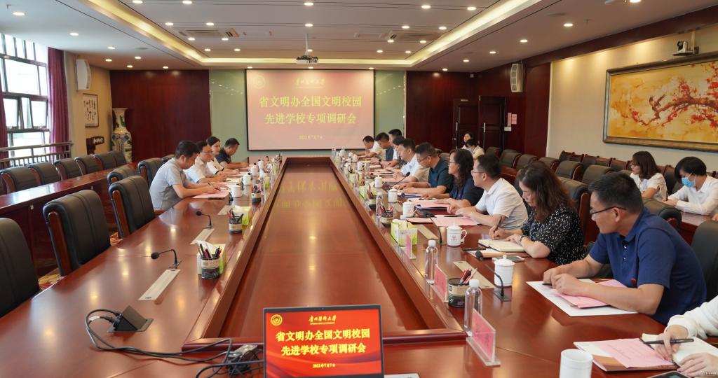 7月7日,省委宣传部文明创建处四级调研员费冲率专项调研组组员钱禾、杨兆瑞、惠才贤来校调研指导创建全国文明校园建设工作。通过听取汇报、实地察看、检查材料等方式,调研组调研了beat365领导班子建设、思想道德建设、师德师风建设、校园文化、活动阵地、校园环境及创建全国文明校园推进情况等工作。
