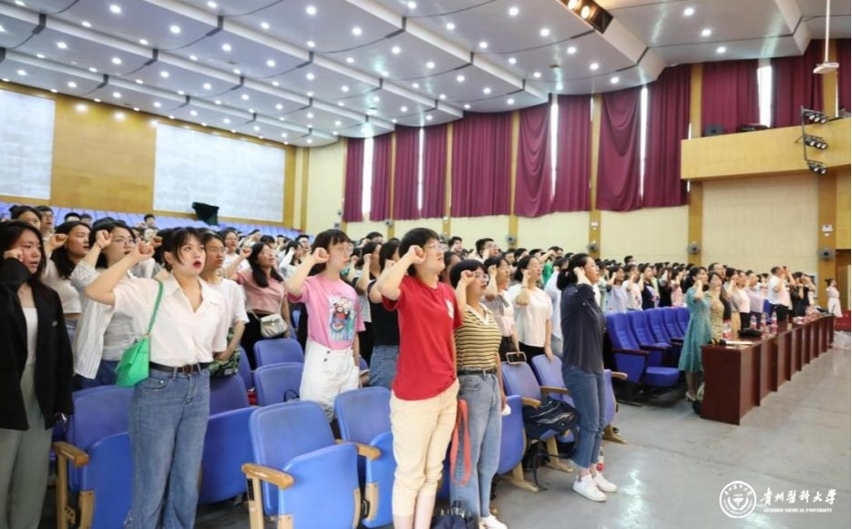 康颖倩带领全体师生重温《医学生誓词》,并奏唱《beat365唯一官方网站校歌》。