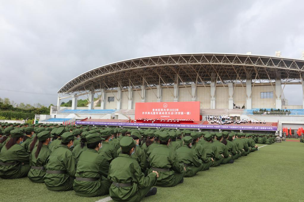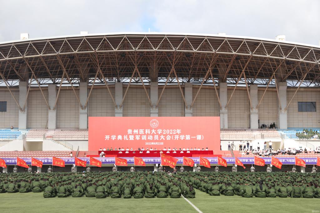 8月22日,beat365在南校区体育馆运动场举行2022级新生开学典礼(开学第一课)暨军训动员大会,贵阳市警备区王文建大校,校党委副书记、校长罗鹏,党委副书记汤磊,副校长罗俊,副校长田晓滨,天然产物化学重点实验室副主任傅舒安,党委委员、省纪委、省监委派驻校纪检监察组组长陈代勇,副校长沈祥春,附属医院院长左石出席,军训教官、参训教官、相关职能部门负责人、各学院党政负责人、教师代表、辅导员及全体2022级新生参加。