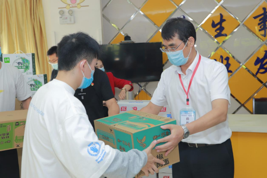 在大学城校区,校党委副书记、校长罗鹏,校党委副书记汤磊对企业的爱心捐赠表示感谢,这些物资为学校疫情防控工作提供了有力支持,也温暖了贵医人的心。同时,现场慰问了疫情防控一线辅导员,并为大家发放慰问品。