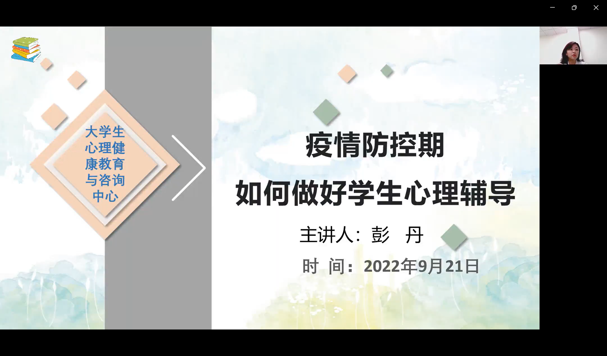 本次培训为加强beat365学生工作者对疫情防控期心理健康知识的认识,提升心理育人、助己的能力,共筑beat365学生心理健康工作防护网提供了专业保障。参加培训的人员也表示此次培训很及时,收获颇丰。