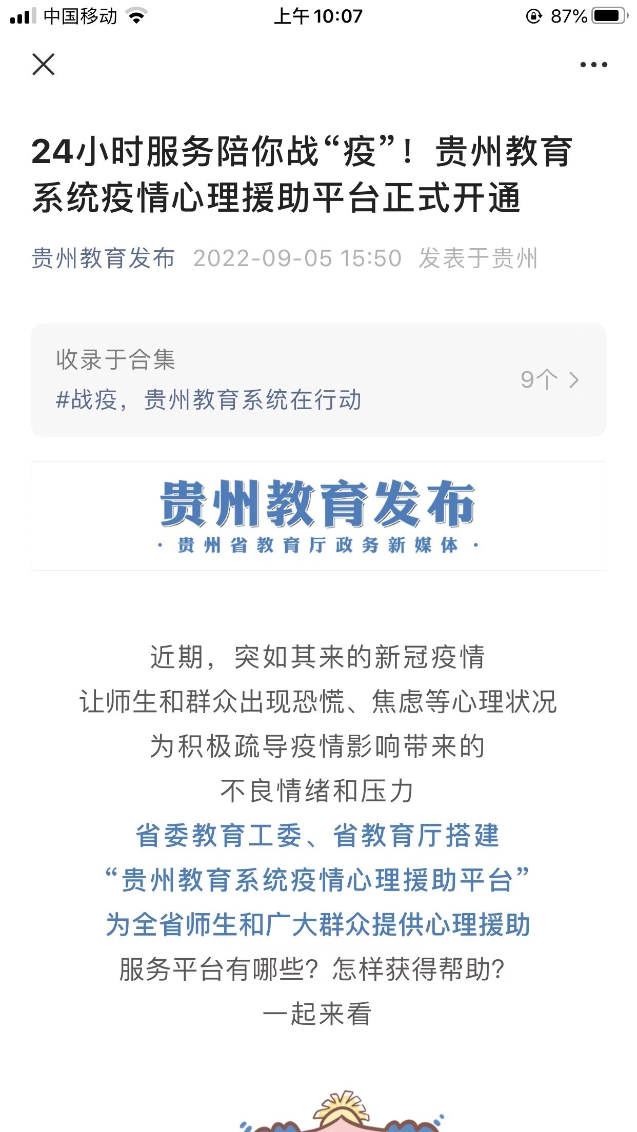 提供专业心理指导。面对突如其来的疫情,学校及时开展心理健康教育和心理援助指导,加强对师生的人文关怀和心理疏导。大学生心理健康与咨询中心组建“三专”即“心理专班、心理专员(专家+心理委员)、心理专线”;组织“线上团体心理活动”“心理解忧箱”“心理读书会”“文创作品征集”等线上心理健康教育活动;以校园广播、微信公众号等媒介向全校师生普及心理健康知识;举办疫情防控期心理健康知识培训;调整《大学生心理健康教育》课程授课内容,引导学生以健康乐观、理性平和的心态面对疫情,减少学生心理健康之虞。另外,学校还积极参与开展“贵州省教育系统疫情心理援助平台”组织建设及运营等工作,为全省师生和广大群众提供心理援助。
