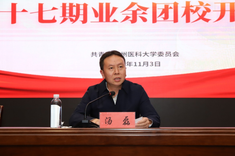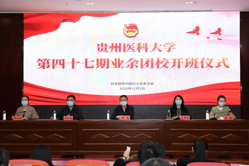 11月3日,beat365在花溪校区道德讲堂举行第四十七期业余团校开班仪式。校党委副书记汤磊出席开班仪式,校团委全体工作人员、各学院团委负责人、部分学员代表在会场参加,各附属医院教学点团组织负责人及其他学员通过视频会议方式参加。