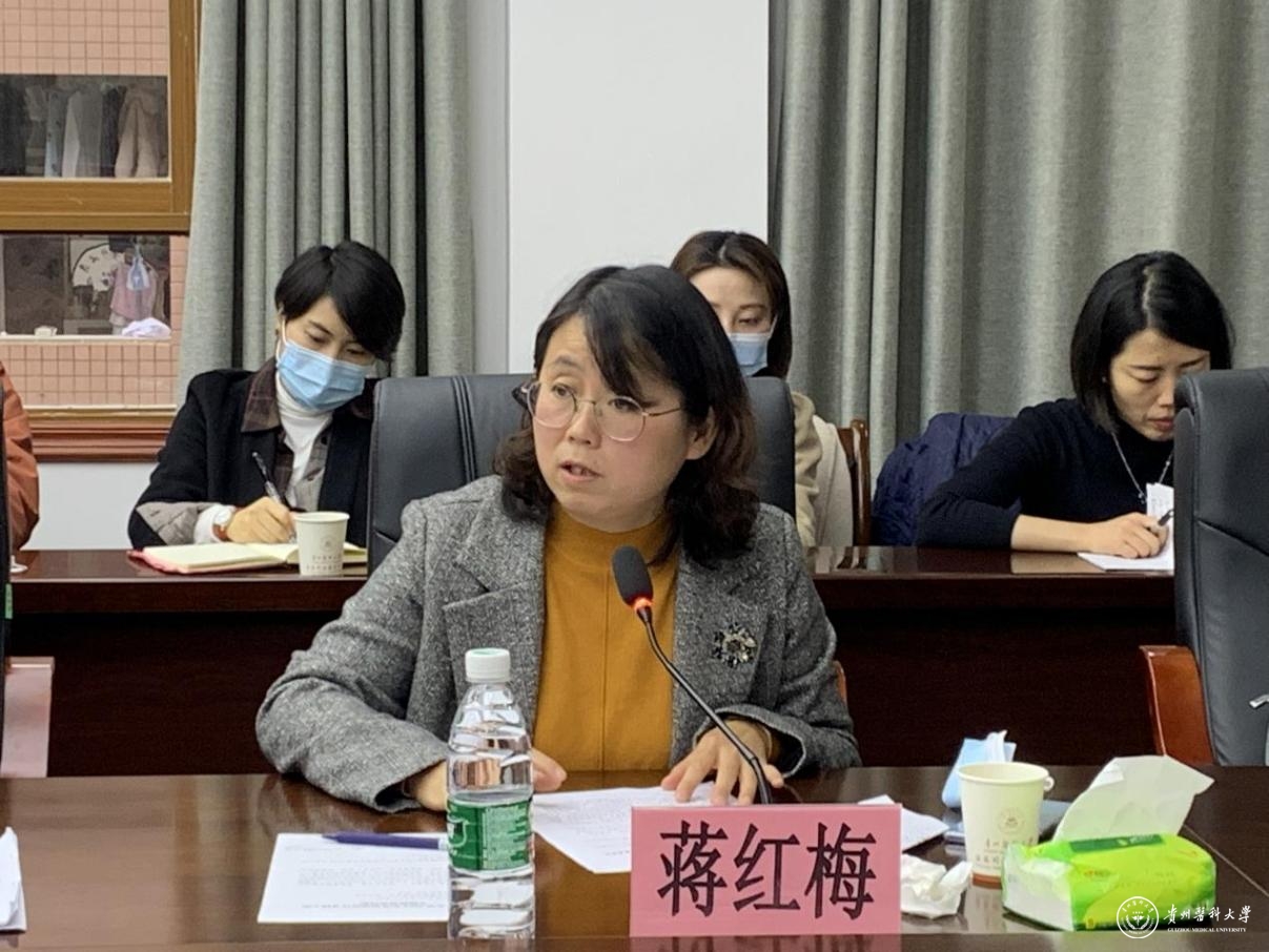 蒋红梅传达了《普通高校年度综合考核2022年前三季度监测情报》反馈主要内容,并就党建工作成效考核中易扣分点进行工作部署要求。她要求,要紧扣上级党建考核指标体系,针对省考核办反馈问题和不足,以高的标准严的要求,针对常错点、易错点反复研究,对既往扣分点要引以为戒,杜绝类似现象再次发生。
