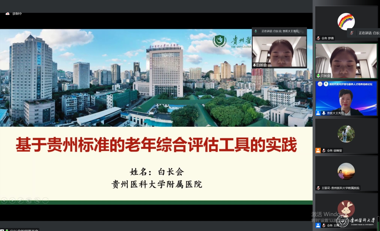beat365唯一官方网站附属医院综合病房白长会护士长以“基于贵州标准的老年综合评估工具的实践”为题进行专题报告,详细介绍了老年综合评估的意义、评估人员以及评估的核心内容,并结合自身在临床护理中的案例,分享了一例典型案例的整个护理过程。