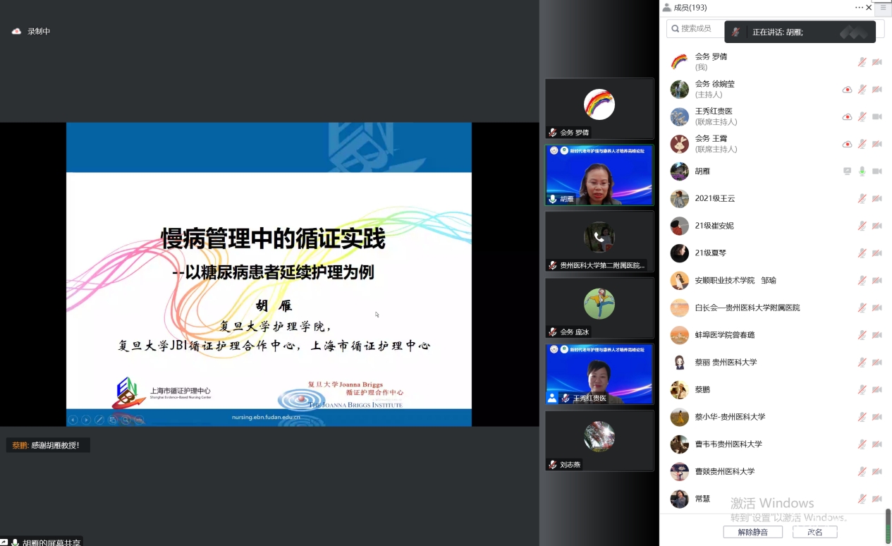 复旦大学护理学院院长、美国护理科学院院士、胡雁教授以“慢病管理中的循证实践”为题,结合案例和文献,阐述了循证实践的必要性,深入浅出地介绍了循证实践方法及其进展情况。