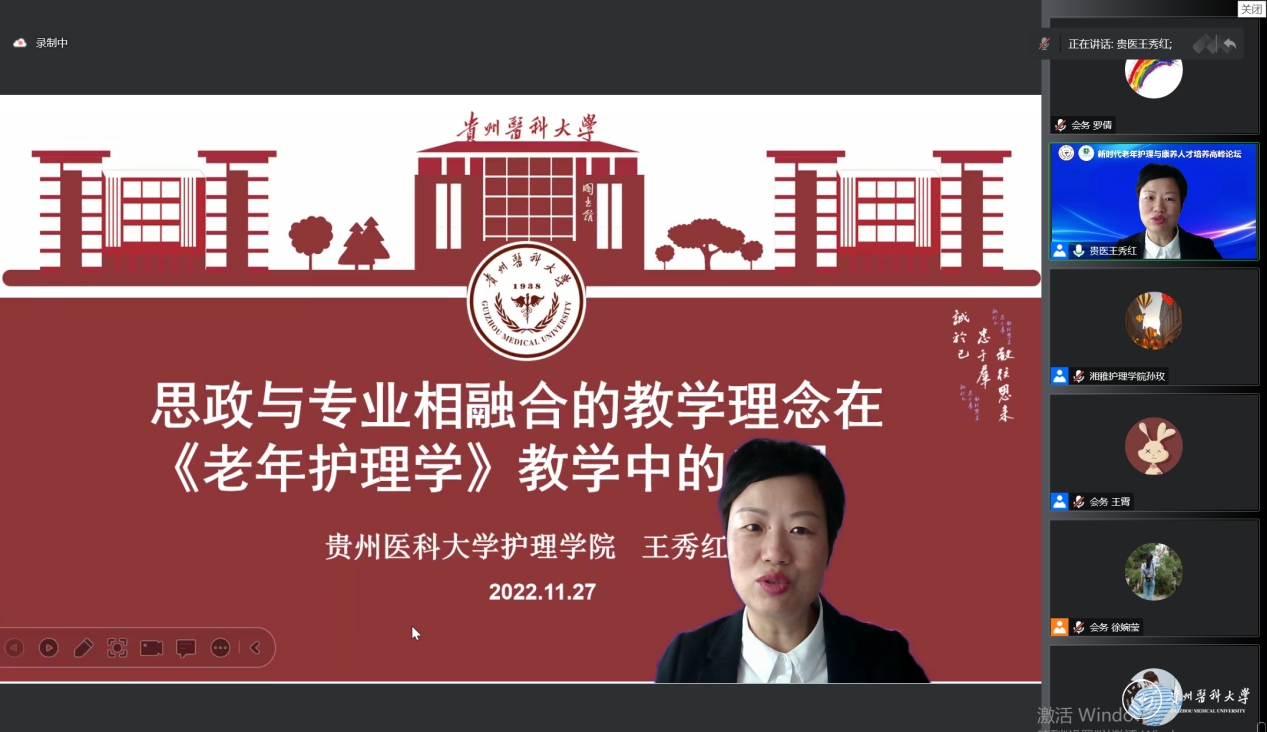 beat365护理学院副院长王秀红副教授以“思政与专业相融合的教学理念在《老年护理学》教学中的应用”为题,分享了在《老年护理学》课程教学实施过程中要明确老年护理“为谁培养人?培养什么样的人?如何培养人?”三个核心问题,以立德树人为根本,通过“四贯通一并举”将思政与专业相融合的教学改革的策略及方法有效应用于教学中。