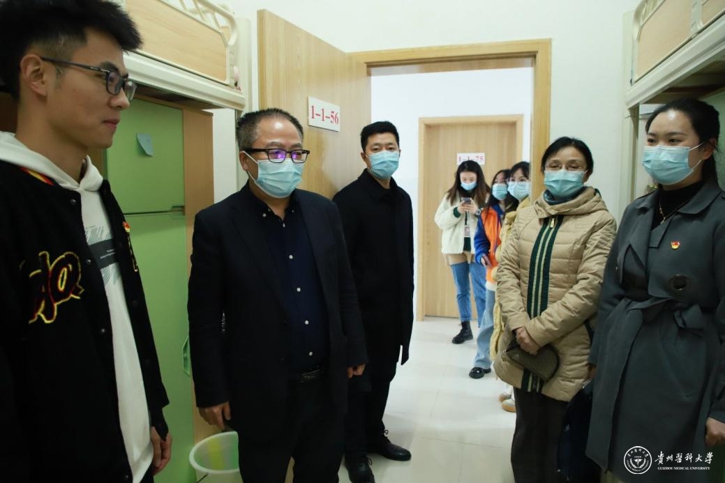 11月30日,副校长曾柱深入学生社区寝室开展“解难题 办实事 送温暖”走访调研慰问。基础医学院领导及辅导员陪同。