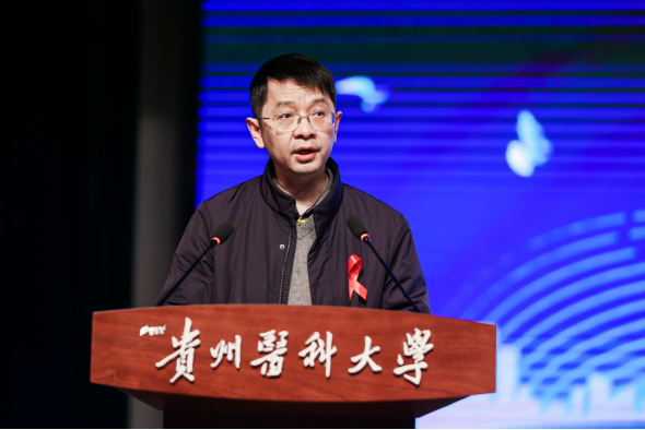 刘文致辞,对贵州省卫生健康委员会、共青团贵州省委对学校各项工作的关心与支持表示衷心感谢。希望同学们认真学习宣传贯彻党的二十大精神和习近平总书记关于艾滋病防治工作重要指示精神,肩负起青年学生参与防治艾滋病的使命与责任,积极参与防艾知识的宣传和推广,传播青春正能量,成为防艾工作的倡导者和实践者。