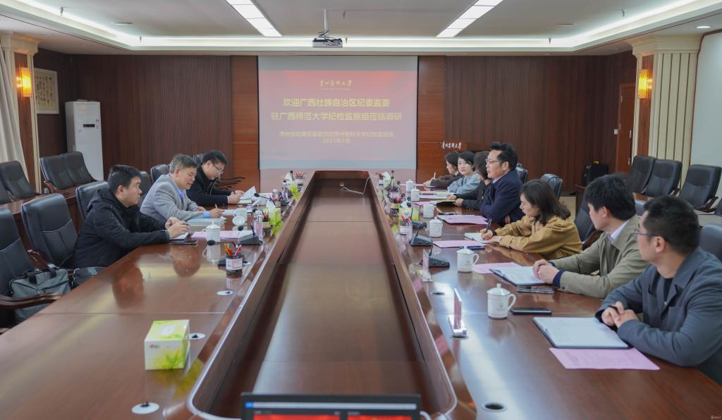 3月22日,广西壮族自治区纪委监委驻广西师范大学纪检监察组组长莫坷一行3人来到派驻beat365唯一官方网站纪检监察组调研,并开展座谈交流。交流会由派驻校纪检监察组组长陈代勇主持。